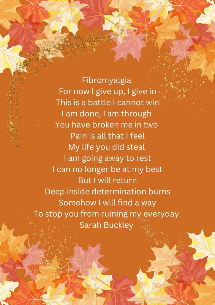I write a lot of poems which I post as reels as it helps me express how I’m feeling. I’m not great with saying how I feel and I find this a good way of expressing my struggle and pain with fibromyalgia. I may ramble on a bit, but I tend to write as I speak.